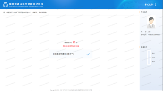 根据《普通话水平测试管理规定》(教育部令第51号)及《普通话水平测试规程》(国语函〔2023〕1号)文件要求,2023年4月1日起,正式取消普通话水平测试备测室和备测时间。请同学们在测试前按照测试大纲内容认真备考,并提前了解测试时第四题具体操作方法。