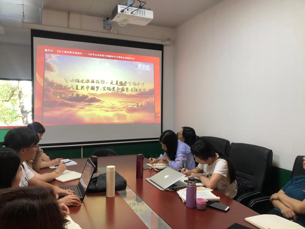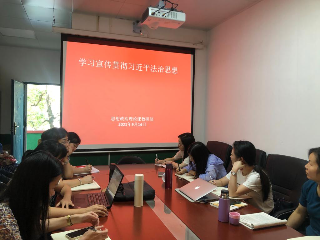 2021年9月14日下午2点,思政部全体教师在思政会议室组织了《学习宣传贯彻习近平法治思想》的活动。