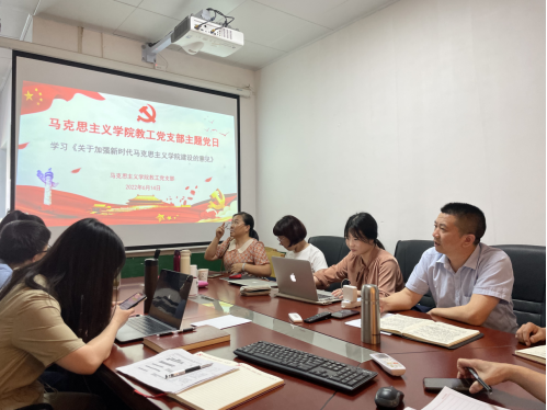 为学好文件精神,不断提升马克思主义学院建设水平,6月14日下午14:00马克思主义学院教工支部在部门会议室6-201召开主题党日活动。