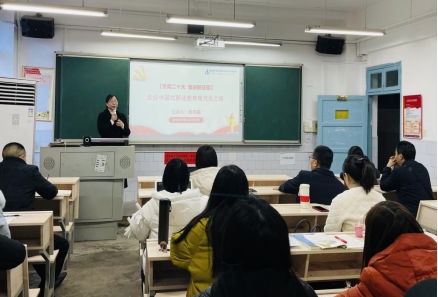 党建融合教学,党建促进工作。为进一步推动内涵建设和高质量发展,3月21日下午,马克思主义学院教工支部在3--305教室开展举行2023年第一季度的党课宣讲,并同时开展进行党的二十大精神融入思政课决赛教学设计展示。学院党委委员、副院长朱焕桃、纪委书记姚庆武参加并做指导发言。