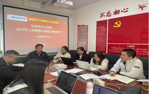 会议随后进行了每周一次的政治理论学习,罗院长结合政治理论学习安排,要求党员教师充分利用好学习强国等平台,一方面加强自学,学习领会、准确理解把握、主动宣传阐释好党的二十大精神,及时将学习精神融入各门思政课程中;一方面要运用好学习成果,做好结合融合文章,实现党建引领业务工作的重要作用。会议组织大家围绕学校文件2023年工作要点和部门课程认证方案进行了具体的学习。