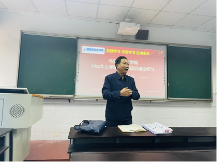 按照院部和支部工作实际,结合“一月一课一片一实践”活动要求,马克思主义学院教工支部于2023年5月9日下午在3-209开展第12周政治理论学习,党建融合教学,做到学用结合、促进工作。