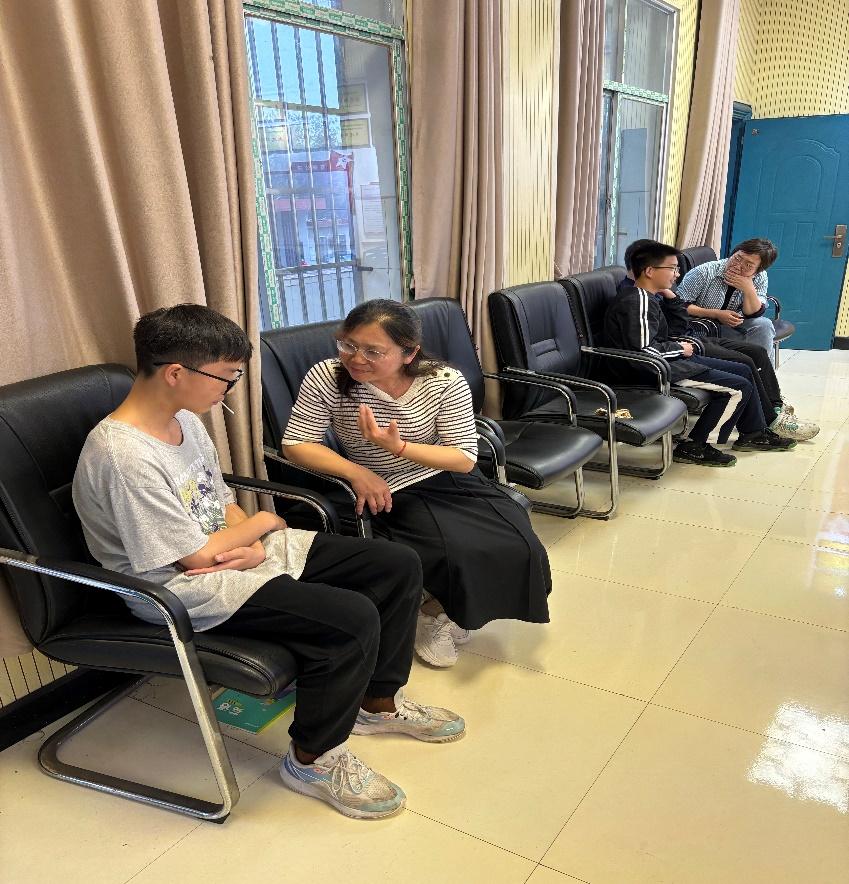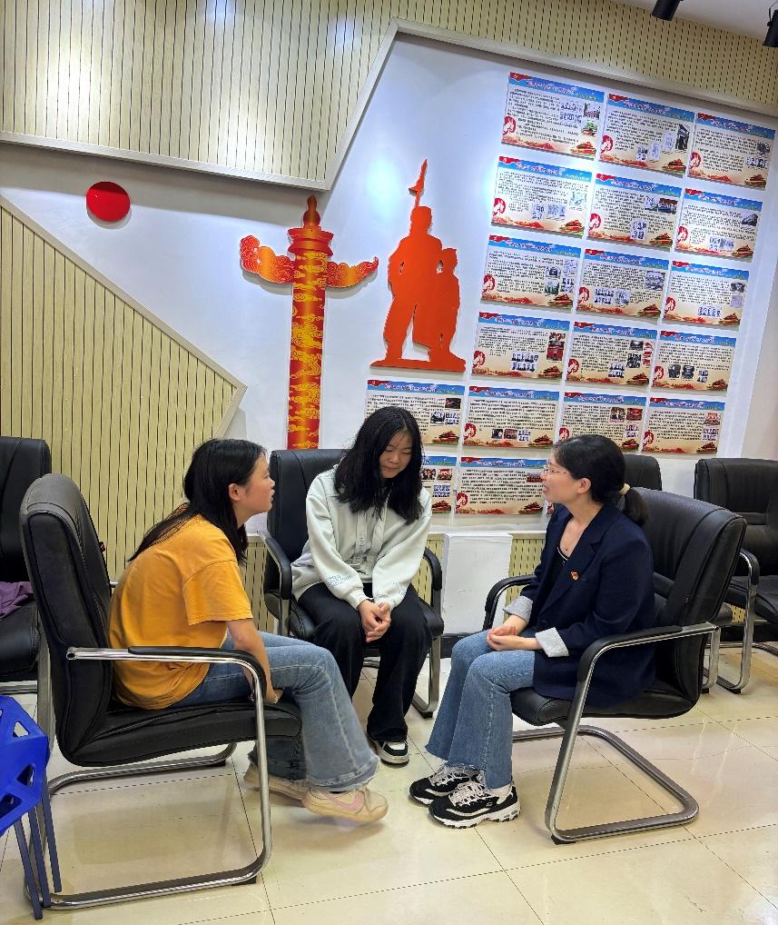 康文艳老师正在与学生面对面交流