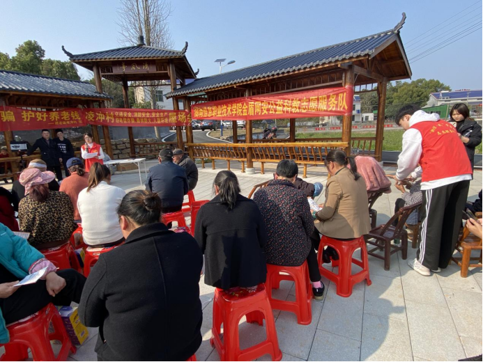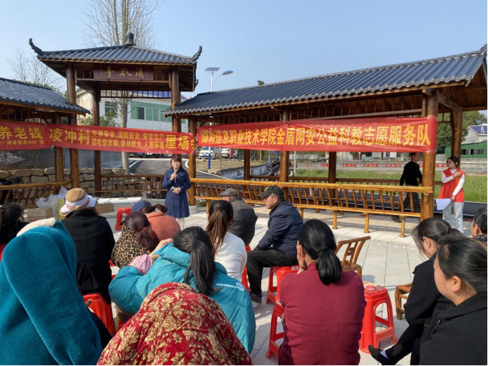 2023年2月27日,长沙市望城区委网信办联合湖南信息职院金盾网安公益团队,在靖港镇麻园屋场清风广场开展网络安全宣传活动。