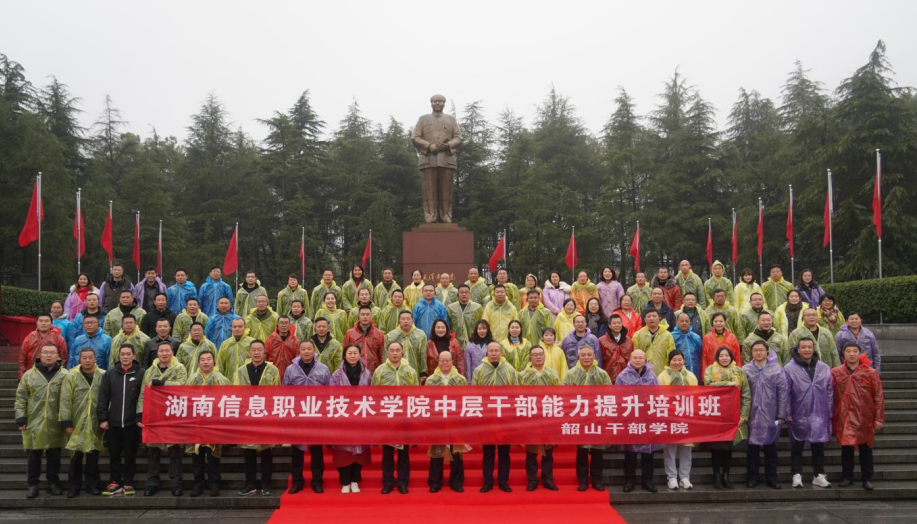 1月8日,在韶山毛泽东同志铜像广场上,一场现场教学拉开beat365中层干部能力提升培训班的序幕。“我志愿加入中国共产党,拥护党的纲领,遵守党的章程,履行党员义务,执行党的决定,严守党的纪律,保守党的秘密,对党忠诚,积极工作,为共产主义奋斗终身……”濛濛细雨中,一列列整齐的队伍,在毛泽东同志铜像前静穆肃立,敬献花篮,重温入党誓词。学院领导及全体中层正副职干部共83人参加此次培训。